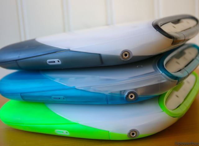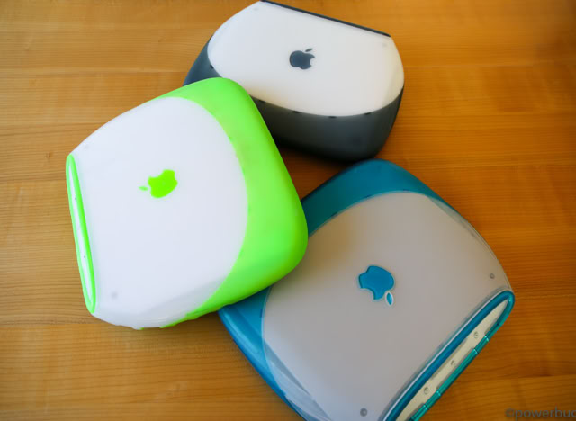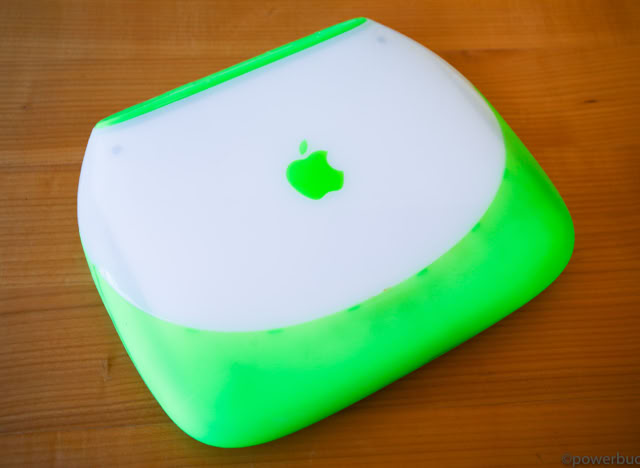 Als das Jahr 1999 anbrach, war die Vier-Produkt-Matrix fast vollständig. Apple hatte den Power Macintosh G3, um den Platz des Pro-Desktops zu besetzen, den iMac, um den Platz des Consumer-Desktops zu besetzen, und das Powerbook G3, um den Platz des Pro-Laptops zu besetzen, hatte aber noch keinen Consumer-Laptop herausgebracht. Das änderte sich im Juli, als Apple das iBook vorstellte. Das iBook war im Wesentlichen ein tragbarer iMac, komplett mit Griff und transparenten, fruchtfarbenen Gehäuseoptionen. Das iBook hatte ein mutiges Design mit abgerundeten Kanten und geschwungenen Kurven. Von oben betrachtet verjüngte sich das Gehäuse des iBooks von hinten nach vorne und hatte dadurch die Form einer Muschelschale. Das Gehäuse bestand aus durchsichtigem „Eis“-Kunststoff, der vorne, oben und an den Seiten mit „Mandarine“- oder „Blueberry“-gummiertem Kunststoff akzentuiert war. Die Oberseite des Gehäuses enthielt ein ziemlich großes Apfelsymbol – größer als jedes Apfelsymbol, das je auf einem anderen Apple-Computer verbaut war. Tatsächlich war das iBook selbst ziemlich groß, kaum schmaler als das G3 Wallstreet aber um einiges tiefer. Der Grund für das ganze Gewicht war, dass das iBook für den Dauergebrauch konzipiert wurde. Es wurde u.a auch für Schulen und Gelegenheitsnutzer konzipiert, die nicht unbedingt behutsam mit einem Computer umgehen würden, insbesondere mit einem Laptop. Um das iBook haltbar zu machen, hatte Apple das Gehäuse extragroß gemacht, auf Abdeckungen verzichtet, die Anschlüsse tief in das Gehäuse eingelassen, Gummipuffer um die Festplatte herum angebracht und die Bildschirmverriegelung vollständig entfernt und durch einen federbelasteten Mechanismus ersetzt. Apple entwickelte eine spezielle Ladestation, die mehrere iBooks gleichzeitig über die beiden Ladekontakte an der Unterseite des Gehäuses aufladen konnte.