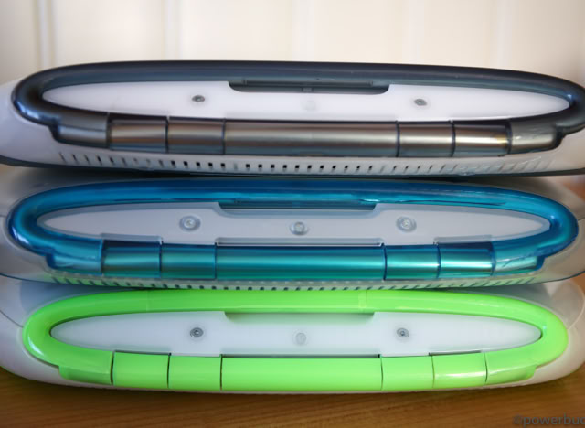 Das iBook kam in zwei Hauptmodellen und zwei Revisionen heraus. Das ursprüngliche iBook wurde im Juli 1999 angekündigt. Es wurde in den Farben Blueberry und Mandarine mit einem 300 MHz PowerPC G3-Prozessor, 32 MB RAM, einer 3,2 GB Festplatte, einem CD-ROM-Laufwerk mit Schubladeneinzug, einem 12-Zoll-LCD-Display mit 800 x 600 Pixeln und aktiver Matrix, einem 56k-Modem, einem USB-Anschluss, Ethernet, drahtlosem Netzwerk und einer Batterie mit einer Laufzeit von sechs Stunden angeboten. Der Preis betrug 1.600 $. Das war weit entfernt vom heutigen 999 $ teuren MacBook Air, aber damals war es volle 900 $ billiger als das Powerbook G3 der untersten Preisklasse. Sieben Monate später, im Februar 2000, fügte Apple der Produktpalette ein „Special Edition“-Modell hinzu. Für 1.799 US-Dollar wurde die CPU des iBook SE auf 366 MHz gesteigert, der RAM auf 64 MB verdoppelt und die Festplatte auf 6 GB fast verdoppelt. Das SE ging auch auf Bedenken hinsichtlich der grellen Farben des bestehenden Modells ein und wurde in Apples professioneller Farbe „Graphit“ angeboten, passend zum iMac DV SE und dem Power Mac G4. Nach über einem Jahr auf dem Markt erhielt das iBook im September 2000 endlich ein dringend benötigtes Upgrade. Die Basismodelle wurden auf 366 MHz Power PC 750 CX (G3)-CPUs aufgerüstet, die trotz ihrer höheren Taktfrequenzen nur geringfügig schneller waren als die 300 MHz PowerPC 750-CPUs, die sie ersetzten. Das aktualisierte iBook enthielt standardmäßig 64 MB RAM, hatte eine verbesserte Grafikkarte, verdoppelte den Videospeicher auf 8 MB, erhöhte die Laufwerksgröße auf 10 GB, fügte einen Firewire-Anschluss und einen Composite-Video-Ausgang hinzu und senkte den Preis um 100 $ auf 1.499 $. Die neuen iBooks kamen in einem tieferen Indigoblau und einem fast neonartigen KeyLime-Grün. Das SE-Modell wurde zur gleichen Zeit aktualisiert und verbesserte das Basismodell durch Hinzufügen eines 466 MHz PowerPC 750cx (G3) und eines DVD-Laufwerks. Das SE wurde sowohl in Graphit als auch in KeyLime angeboten. Der Preis blieb bei 1.799 $.